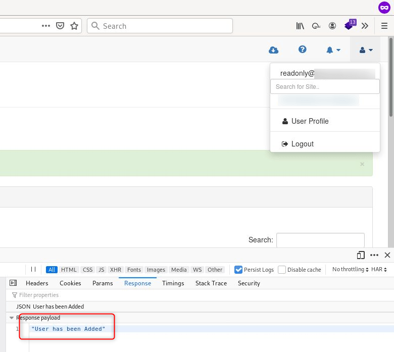 Since the read-only user’s permissions are not validated, the new user is successfully added.