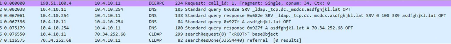This request will trigger the target machine to resolve the domain, by making a DNS query to _ldap.tcp.dc._msdcs.<our_domain> .